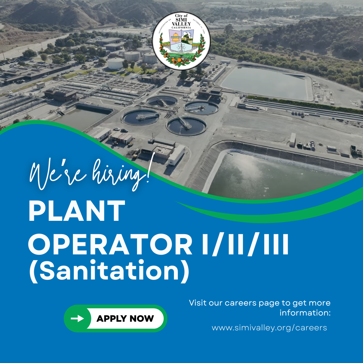 The City of Simi Valley is seeking a team‑oriented self‑starter to join our Public Works Sanitation Division as Plant Operator I, II, or III (depending on experience).