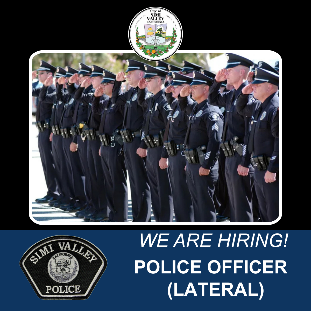 Bring your experience, skills, and dedication to a department that values professionalism, integrity, and community partnership. As a Lateral Police Officer with the Simi Valley Police Department, you’ll join a team committed to protecting and serving while enjoying competitive pay, exceptional benefits, and opportunities for specialized assignments and career advancement.